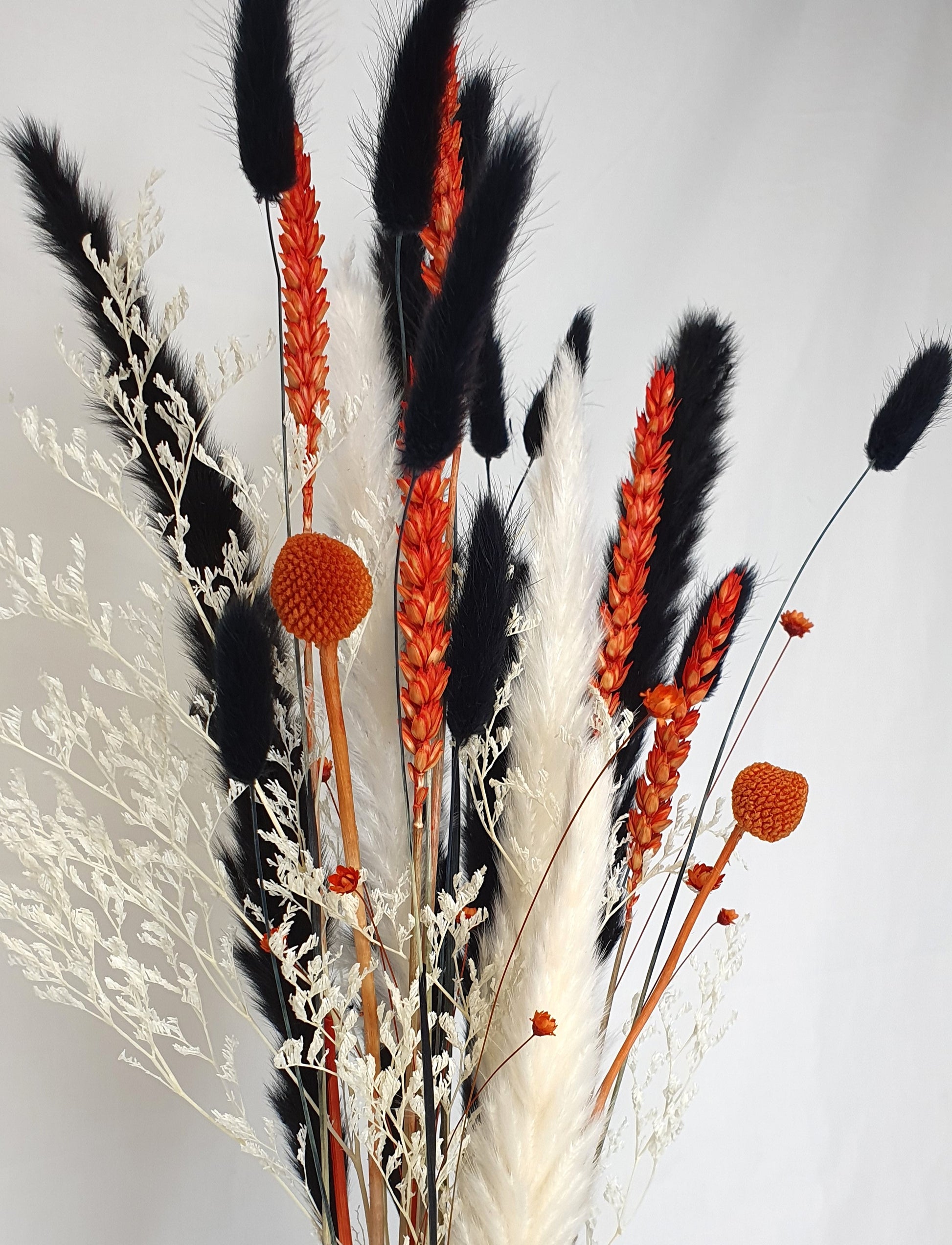 This autumn dried flower bouquet includes a selection of natural dried florals including pampas grass, wheat, bunny tails and mini flowers