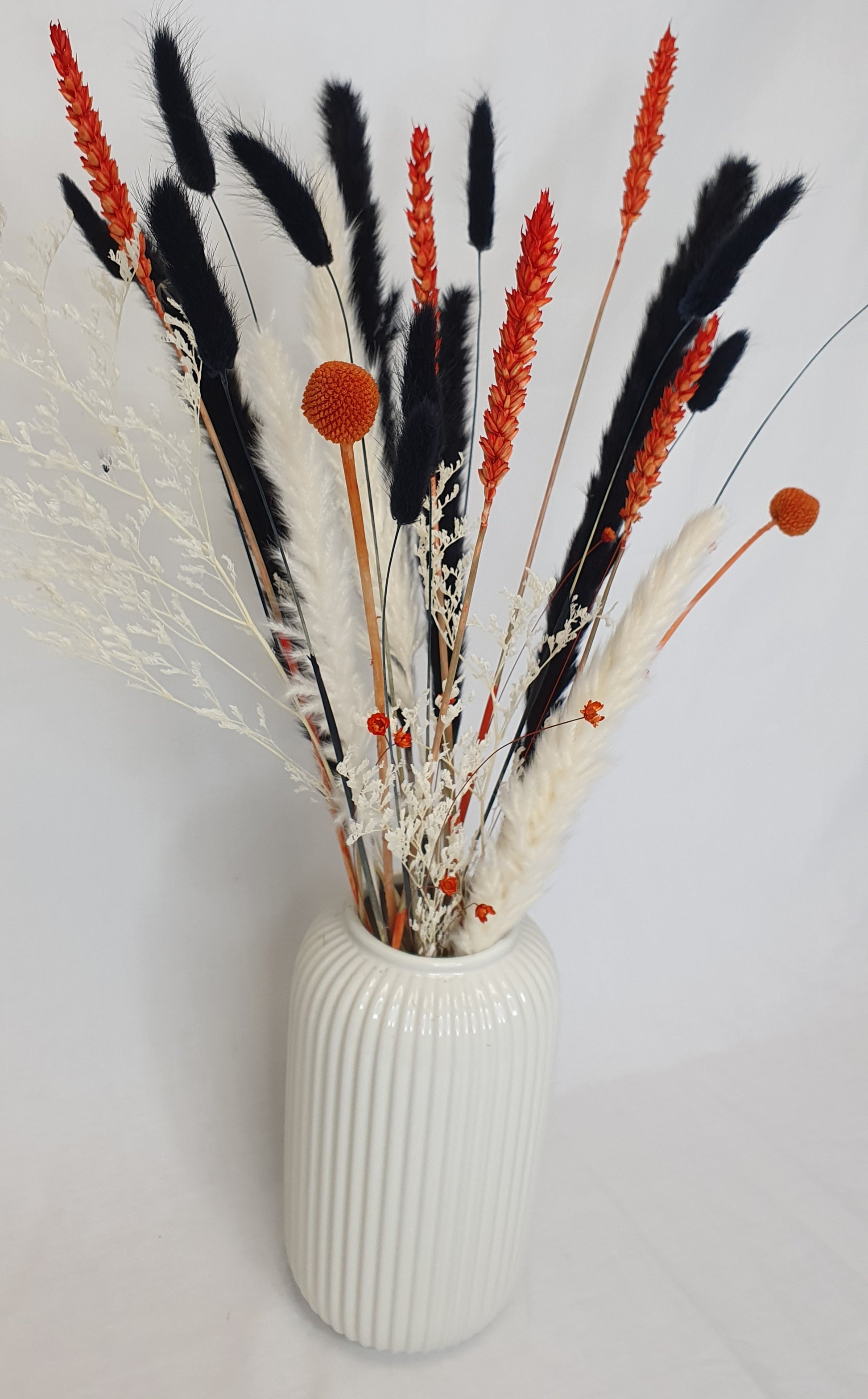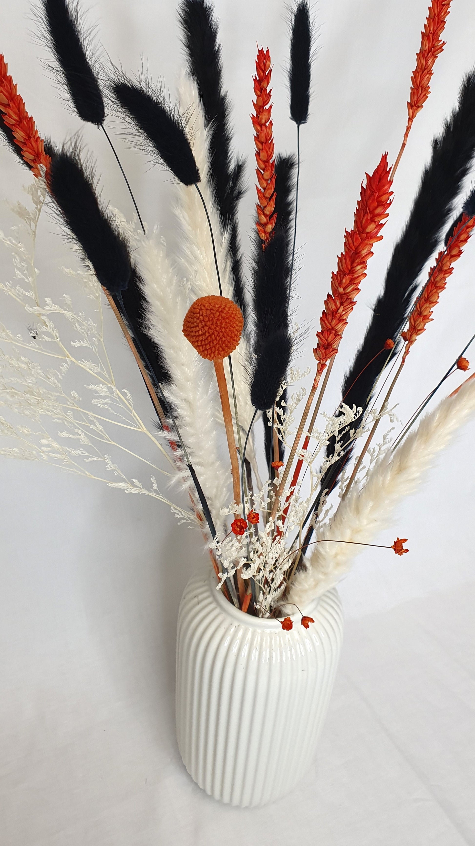 The pampas grass bouquet is pre-arranged and gift-ready, although to make the pampas plumes super fluffy just leave them out in the sun for a few hours or fluff them up with a hairdryer. A fine mist of hairspray will prevent any further shedding. The dried flower arrangements will remain beautiful year after year, and are expected to last for up to 5 years without the need for watering or pruning, so you can sit back and enjoy the beautiful bunch.