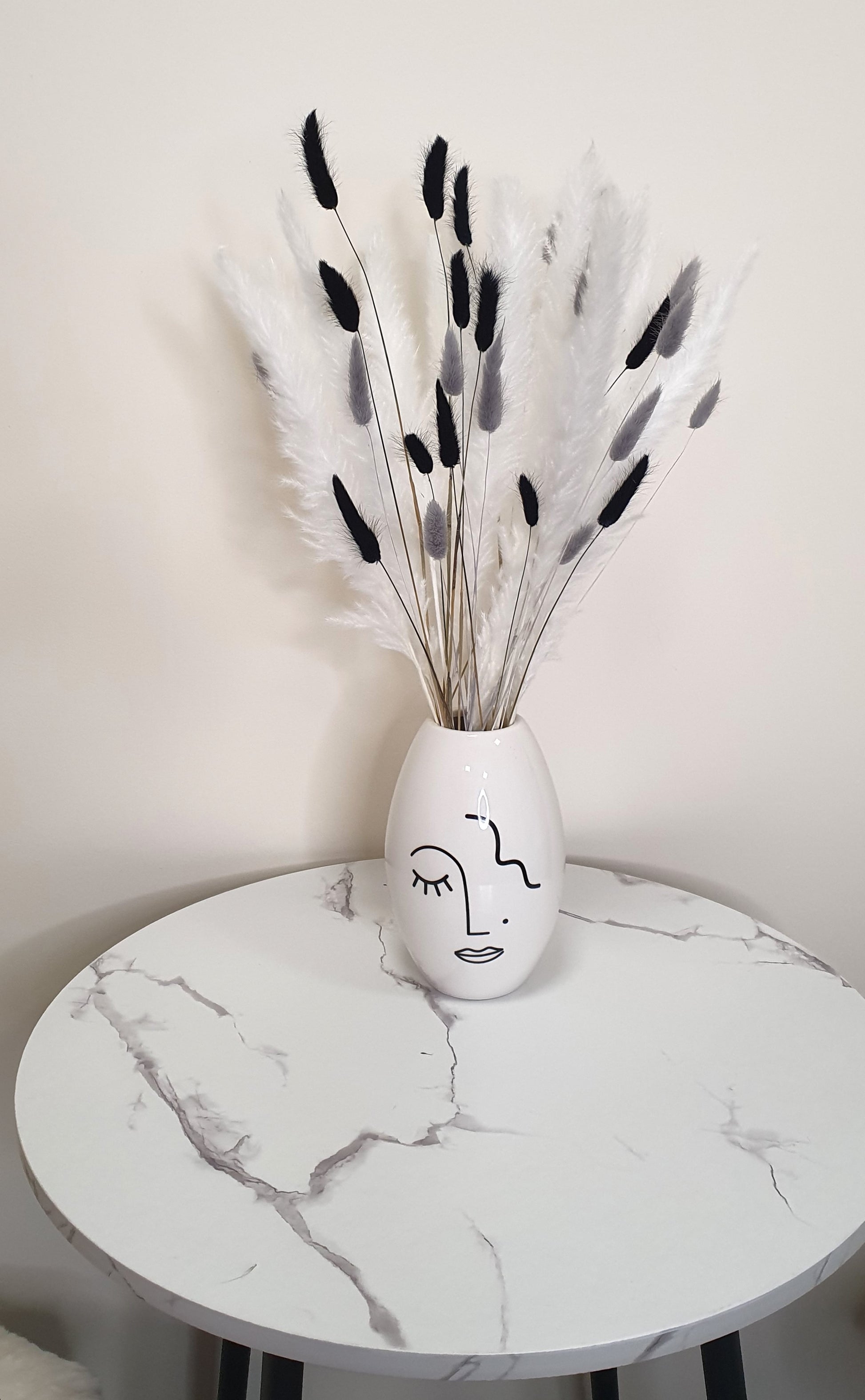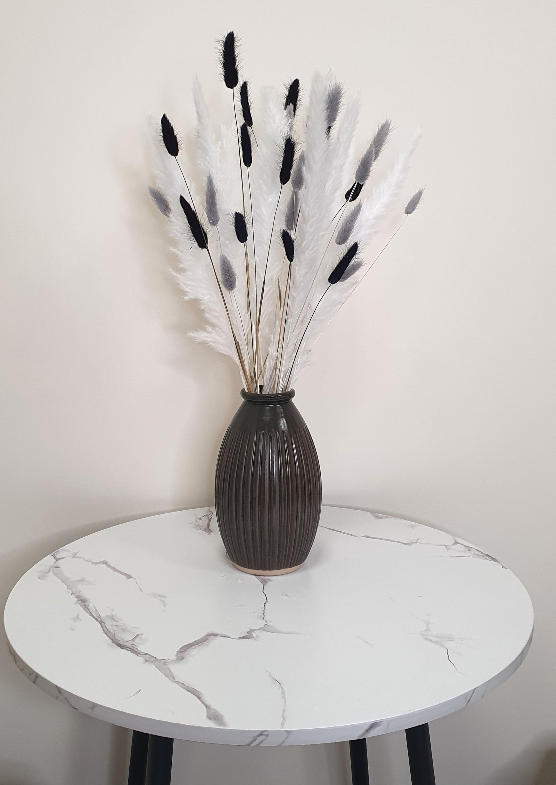 Pampas grass and bunny tails bunches in a gorgeous monochrome colour combination - White pampas grass with mixed black and grey bunny tails dried stems.